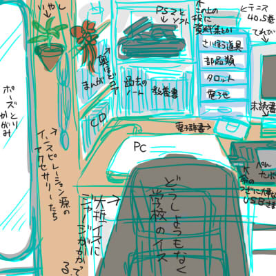 こんな環境でいつも暮らしています。椅子と机がどうしようもなく学校なのはここが学寮だからです。